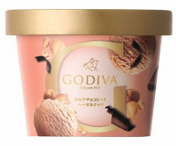 ゴディバ厳選のクーベルチュールミルクチョコレートが、ヘーゼルナッツのおいしさを一層引きたてる香り豊かなアイスクリーム。カール状チョコレートのトッピングが重なり、パリッとした心地よい食感とくちどけが、更なる味の深みと変化を与えます。ヘーゼルナッツのふんわり香ばしい香りと濃厚な味わいを引き出した逸品です。